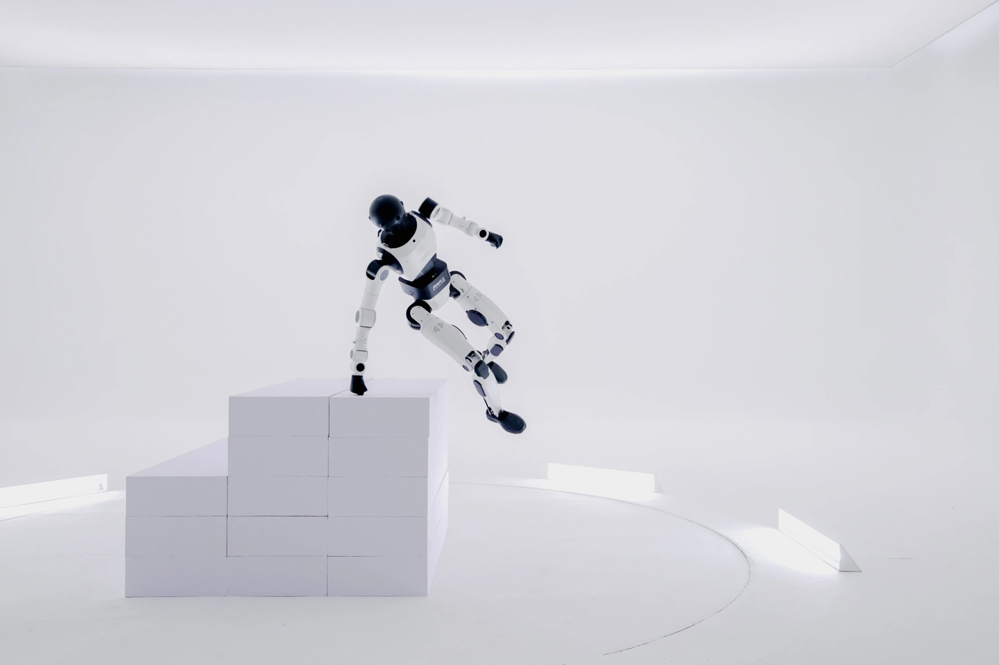 该平台通过自研“慧思开物”智能系统实现本体稳定性与运动控制能力升级,成为行业内首个具备触物交互式全身高动态运动控制能力的全尺寸人形机器人。